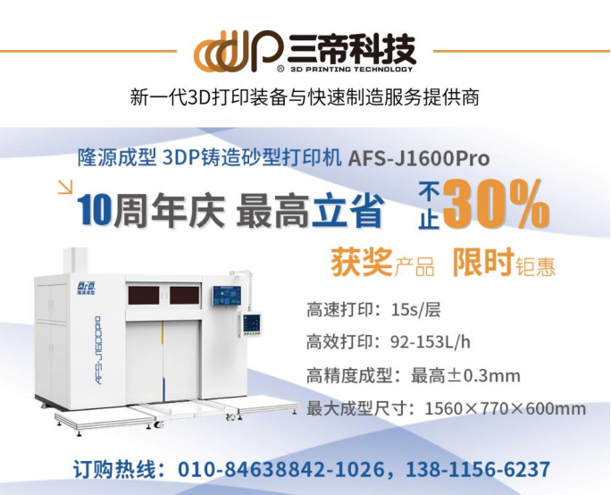 SANDY TECHNOLOGY CO., LTD. wurde vor 10 Jahren gegründet, um den meisten Nutzern für ihre Unterstützung zu danken, Longyuan Formen 3DP Sanddrucker AFS-J1600Pro, eine begrenzte Zeit gro?e Vorteile, 30 September 2023 vor der Bestellung, und sparen Sie mehr als 30%!