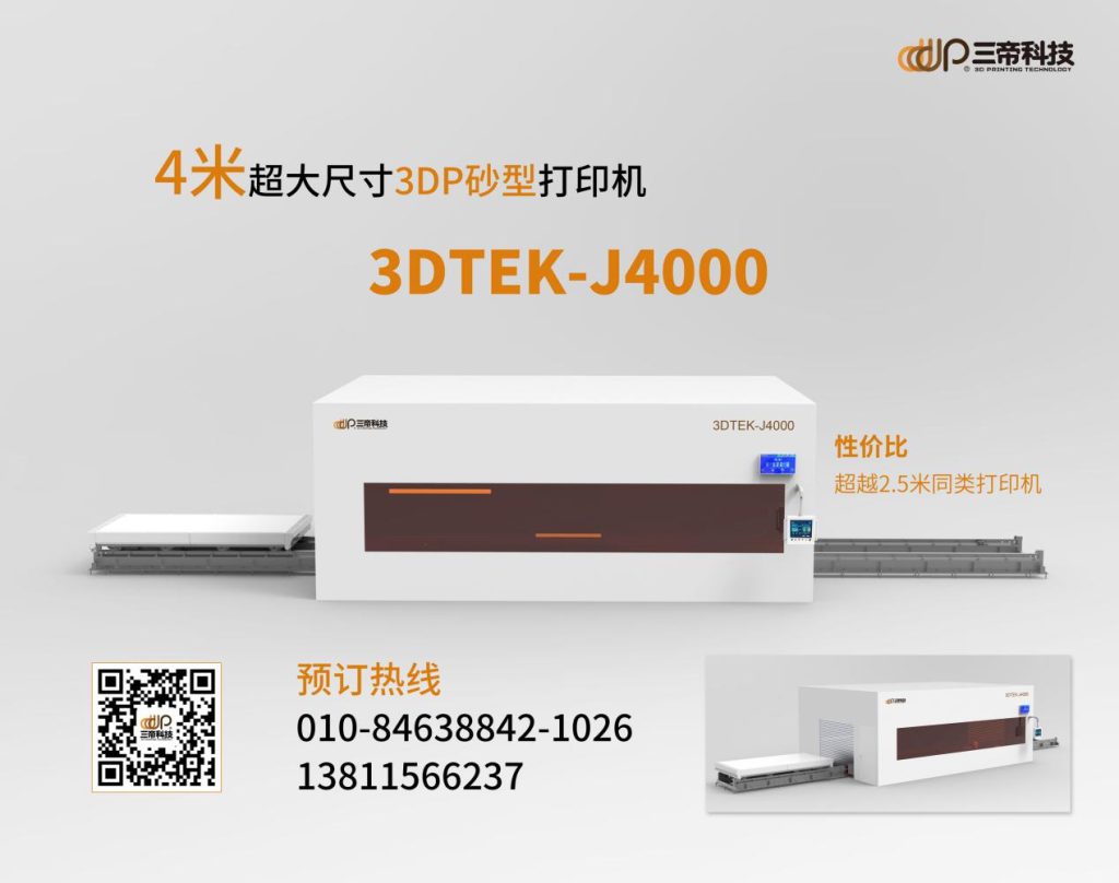 Um die Marktnachfrage nach gro?en Gussteilen zu befriedigen, hat der 3D-Drucker und Rapid-Manufacturing-Dienstleister Beijing SANDI Technology Co., Ltd. als erster in China einen selbstentwickelten 3DP-Sanddrucker 3DTEK-J4000 auf den Markt gebracht. Das Ger?t durchbricht die traditionellen Gr??enbeschr?nkungen bei der Verarbeitung und kann maximal zu einer 4 Meter langen Sandform geformt werden. Ger?t kreativ genutzt, ohne Sandkasten flexible Fl?che bilden Technologie, brechen die Ausrüstung, um die gr??ere Gr??e zu bilden, der Preis der Ausrüstung wild steigenden seltsames Ph?nomen, so dass 4 Meter oder gr??er Gr??e der Ausrüstung, und 2,5 Meter der Preisunterschied zwischen den Ger?ten m?glich werden. Wirtschaftlich und flexibel, mit niedrigeren Stückkosten und kürzerer Lieferzeit, kann sie die Herstellung übergro?er Sandformen wirtschaftlich und effizient realisieren und sie kann die erweiterte Druckplattform nach Bedarf des Benutzers anpassen, um den Produktionsbedarf der 10m+ Ebene zu decken (6m/8m/10m Anlagen nehmen bereits Buchungen in synchroner Weise an), was dem Benutzer hilft, die Produktivit?t zu maximieren. (Ausl?ndische Freunde k?nnen hier klicken, um mehr über unser gro?er 3D-Drucker)