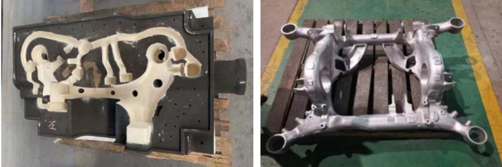 Der von SANDI Technology an den Kunden gelieferte leichte, gro?fl?chige und dünnwandige Hilfsrahmen für New Energy Commercial Trucks wiegt etwa 27 kg, hat eine Wandst?rke von 5,5 mm und besteht aus hochwertigem Aluminium T6061. Der herk?mmliche Guss dauert allein für die Herstellung der Gussform 1-2 Monate, und die Kosten sind hoch. Das 3D-Gie?verfahren von SANDI Technology erm?glicht die Lieferung von fertigen Produkten in 2 Wochen.