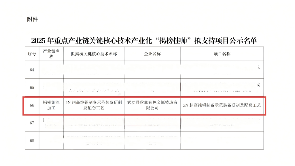 喜報(bào)!欣鑫鑄造5N超高純鋁制備項(xiàng)目獲批陜西省重點(diǎn)產(chǎn)業(yè)鏈關(guān)鍵核心技術(shù)產(chǎn)業(yè)化“揭榜掛帥”支持最先出現(xiàn)在三帝科技股份有限公司。