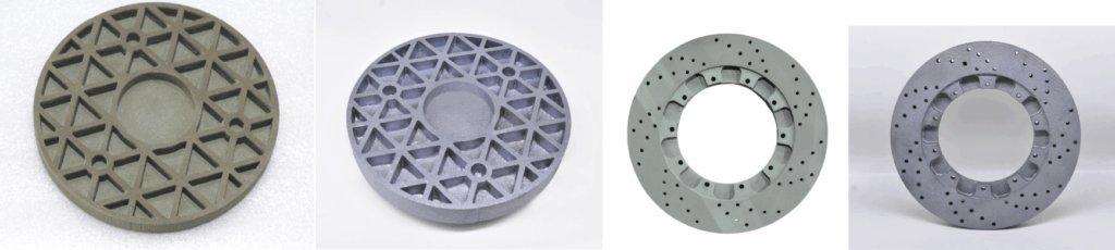 三帝科技已自主掌握BJ粘結劑噴射金屬/陶瓷成型設備、材料、工藝等全鏈條關鍵技術:自主研發3DPTEK-J160R/J400P/J800P系列化BJ打印設備,集成精準供料、高致密鋪粉與高精度噴墨控制系統。解決了小粒徑低流動性粉末高致密鋪放難題,實現800-1200dpi超高分辨率打印,成型精度優于±0.1mm,最高成型效率3600cc/h,技術指標達國際先進水平。形成了健全的粘結劑材料成型工藝體系。基于水基環保型粘結劑和溶劑基高效粘結劑兩大種類形成的20余種工藝配方,開發相應的成型工藝和脫脂燒結等后處理工藝,實現了適用于不銹鋼、工模具鋼、鈦合金、銅合金、高溫合金、硬質合金等金屬材料,碳化硅(SiC)等陶瓷材料以及PMX晶態蠟、無機鹽、食品、藥品、高分子復合材料等非金屬材料的成型工藝。同時,通過對高致密度脫脂燒結成型工藝的系統研究,實現了對脫脂燒結過程中金屬與陶瓷產品的控形與控性,對脫脂燒結后的成品質量實現精準把控,產品性能優于MIM國際材料標準的力學性能。