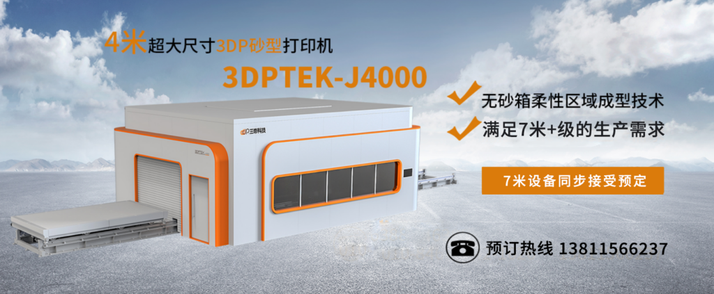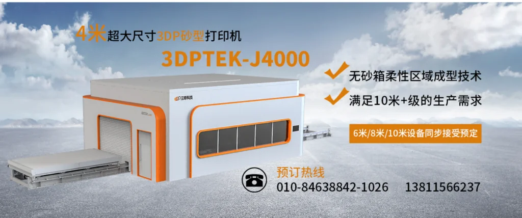 | 3DPTEK-J4000 | 4000×2000×1000mm | 0.28-0.32mm | 超大型砂型(如船舶螺旋槳、大型閥門) | 不銹鋼、特種合金 |