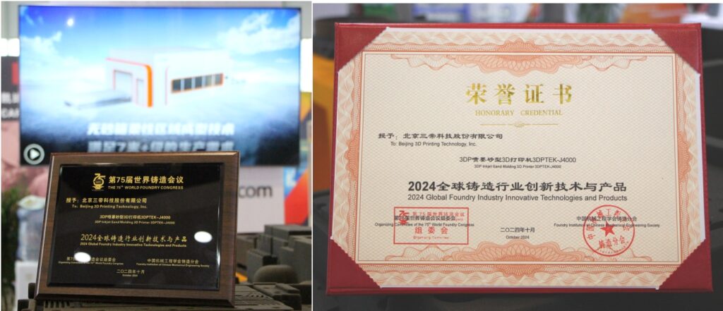 Ngày 26 tháng 10 n?m 2024, do T? ch?c ?úc th? gi?i (WFO) t? ch?c và Chi h?i ?úc c?a Hi?p h?i K? thu?t C? khí Trung Qu?c ??ng cai.H?i ngh? ?úc th? gi?i l?n th? 75 và Tri?n l?m ?úc qu?c t? 2024L? khai m?c long tr?ng ?? di?n ra t?i Trung tam H?i ngh? và Tri?n l?m Qu?c t? Wende, thành ph? Deyang, t?nh T? Xuyên - "Th? ?? c?a ngành c?ng nghi?p n?ng Trung Qu?c". H?n 100 doanh nghi?p n?i ti?ng trong và ngoài n??c ?? cùng nhau tr?ng bày các c?ng ngh? và s?n ph?m sáng t?o trong l?nh v?c ?úc toàn c?u. H?n 1.000 chuyên gia và h?c gi? ?? t? h?p ?? th?o lu?n v? s? phát tri?n c?a ngành ?úc toàn c?u. Nhà cung c?p thi?t b? in 3D và d?ch v? s?n xu?t nhanh hàng ??u trong n??c.C?ng ty C? ph?n C?ng ngh? San Di B?c Kinhmang theoGi?i pháp ?úc 3DTham gia tri?n l?m (S? gian hàng: B13), máy in cát 3DP kích th??c siêu l?n do c?ng ty t? nghiên c?u và phát tri?n.3DPTEK-J4000???c vinh danh là “C?ng ngh? và s?n ph?m sáng t?o trong ngành ?úc toàn c?u n?m 2024”.